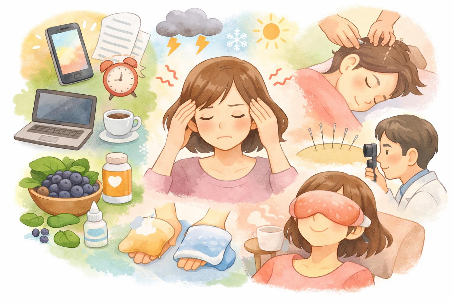 鍼灸治療は、目の奥の重い痛みや、それに伴う頭痛・めまい・吐き気といった症状の緩和に効果が期待できます。定期的なメンテナンスとして取り入れることで、疲れが溜まりにくい身体づくりを目指すことも可能です。